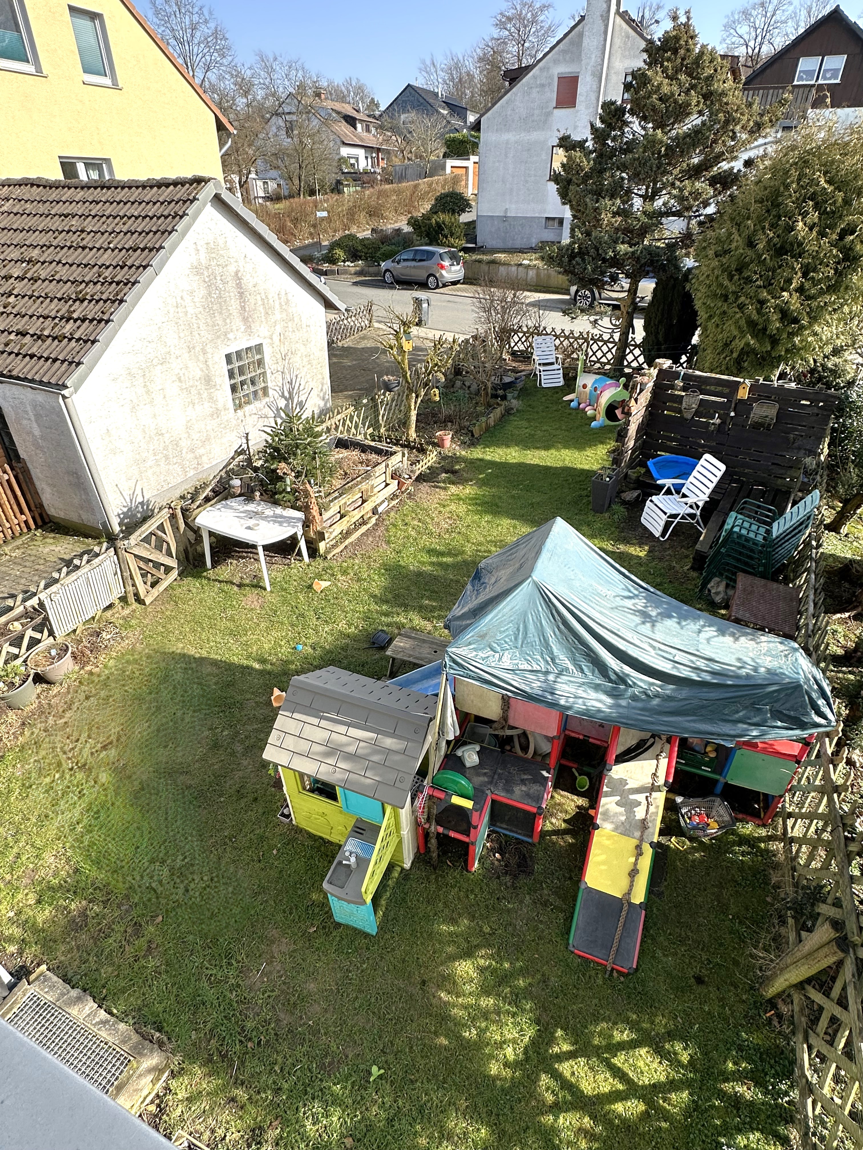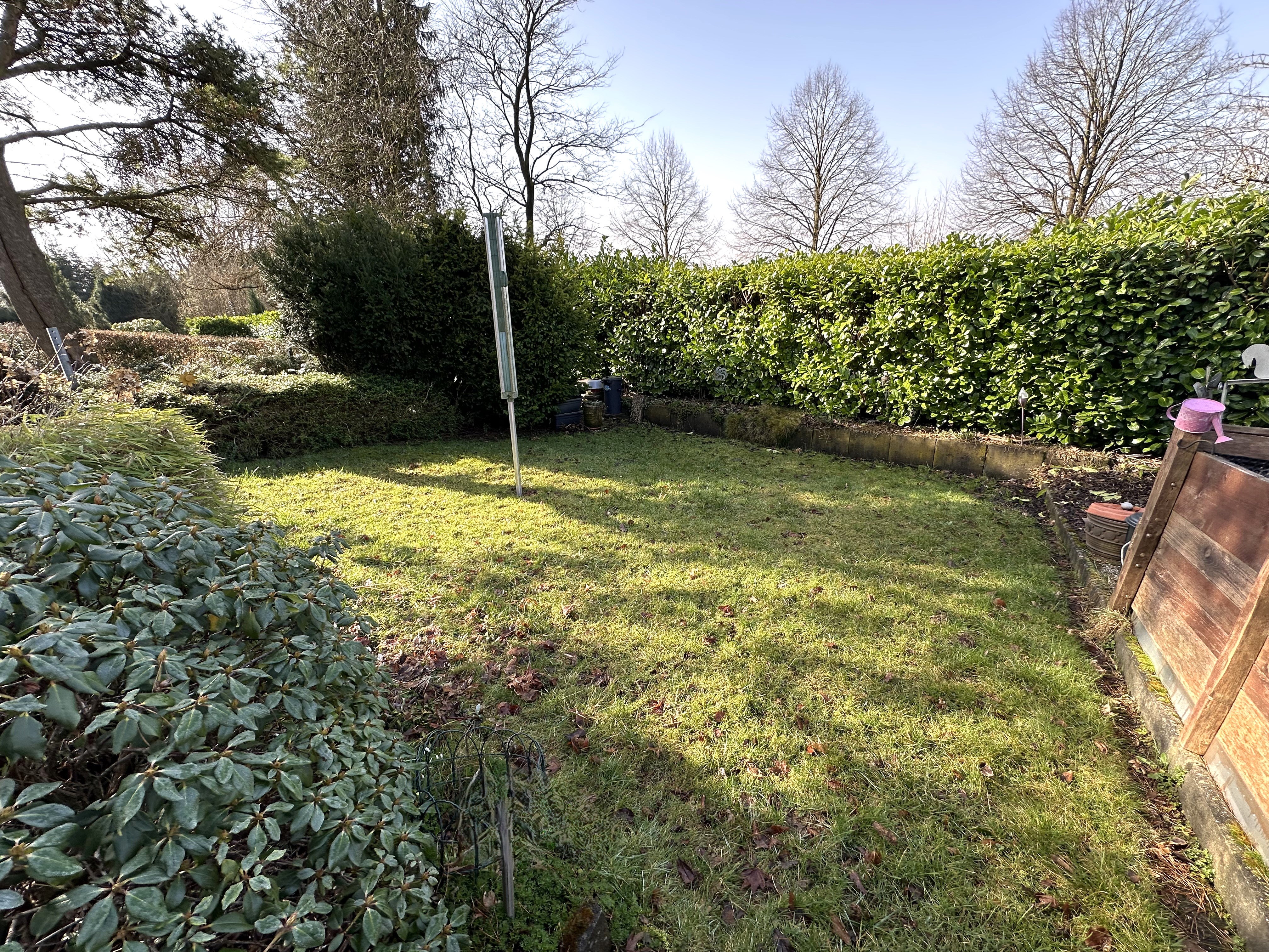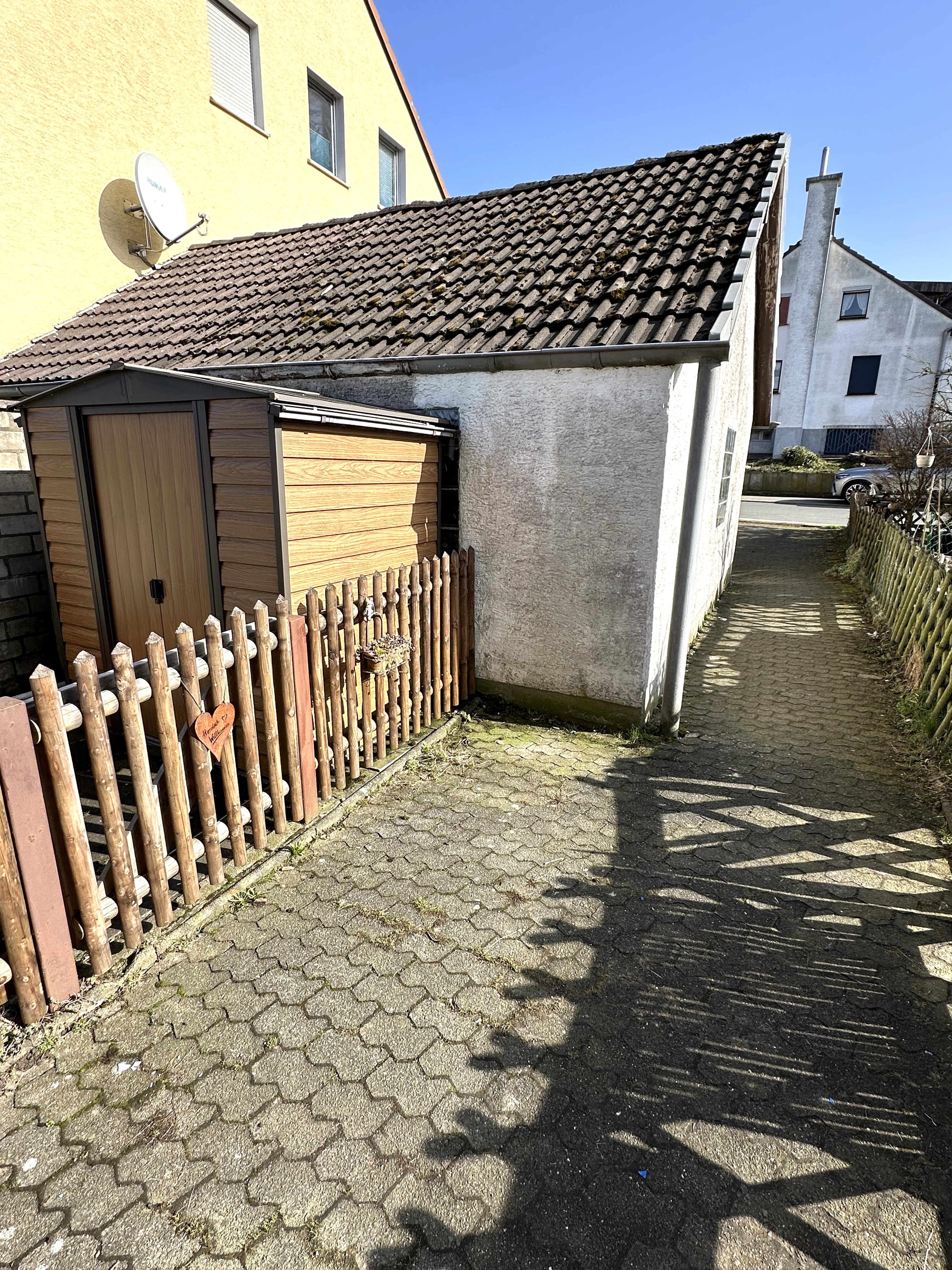Vor dem Haus befindet sich eine schöne Rasenfläche und die Garage, auf der Rückseite des Hauses befindet sich noch eine weitere Rasenfläche, diese kann man über einen Weg neben dem Haus erreichen.