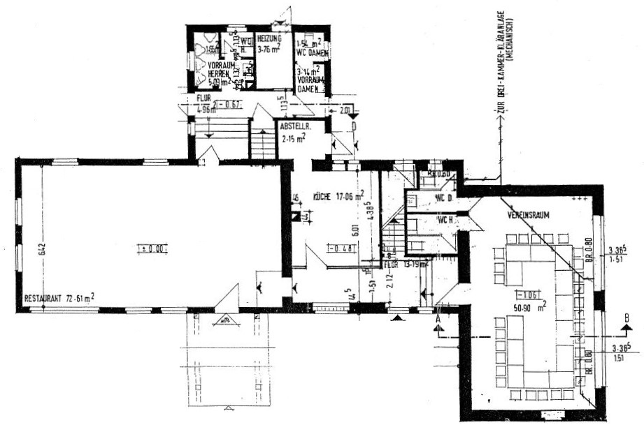 – Restaurantbetrieb mit Küche, Gastraum Speisesaal und Toiletten.