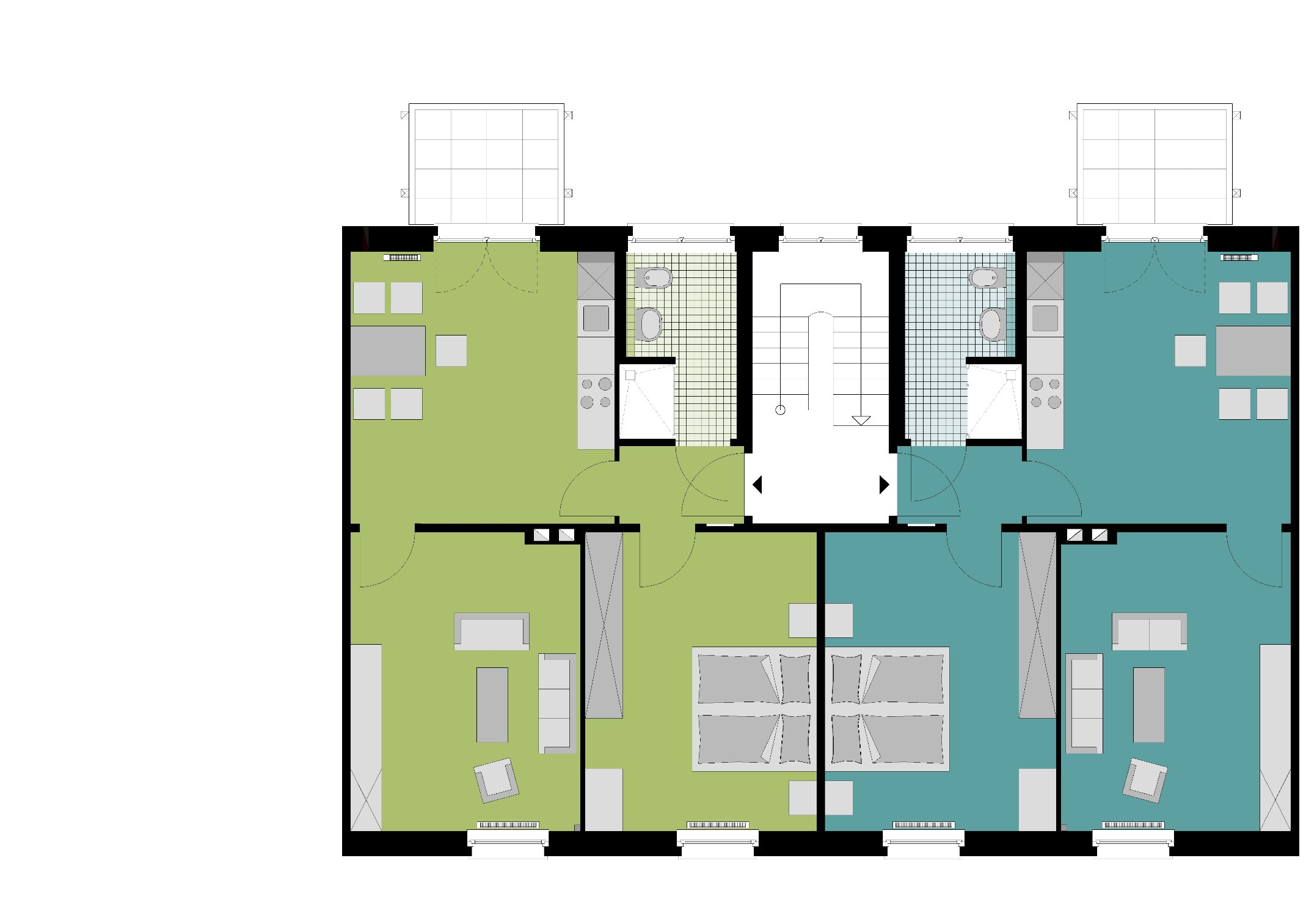 – Tageslichtbad mit Badewanne und bodengleicher Dusche