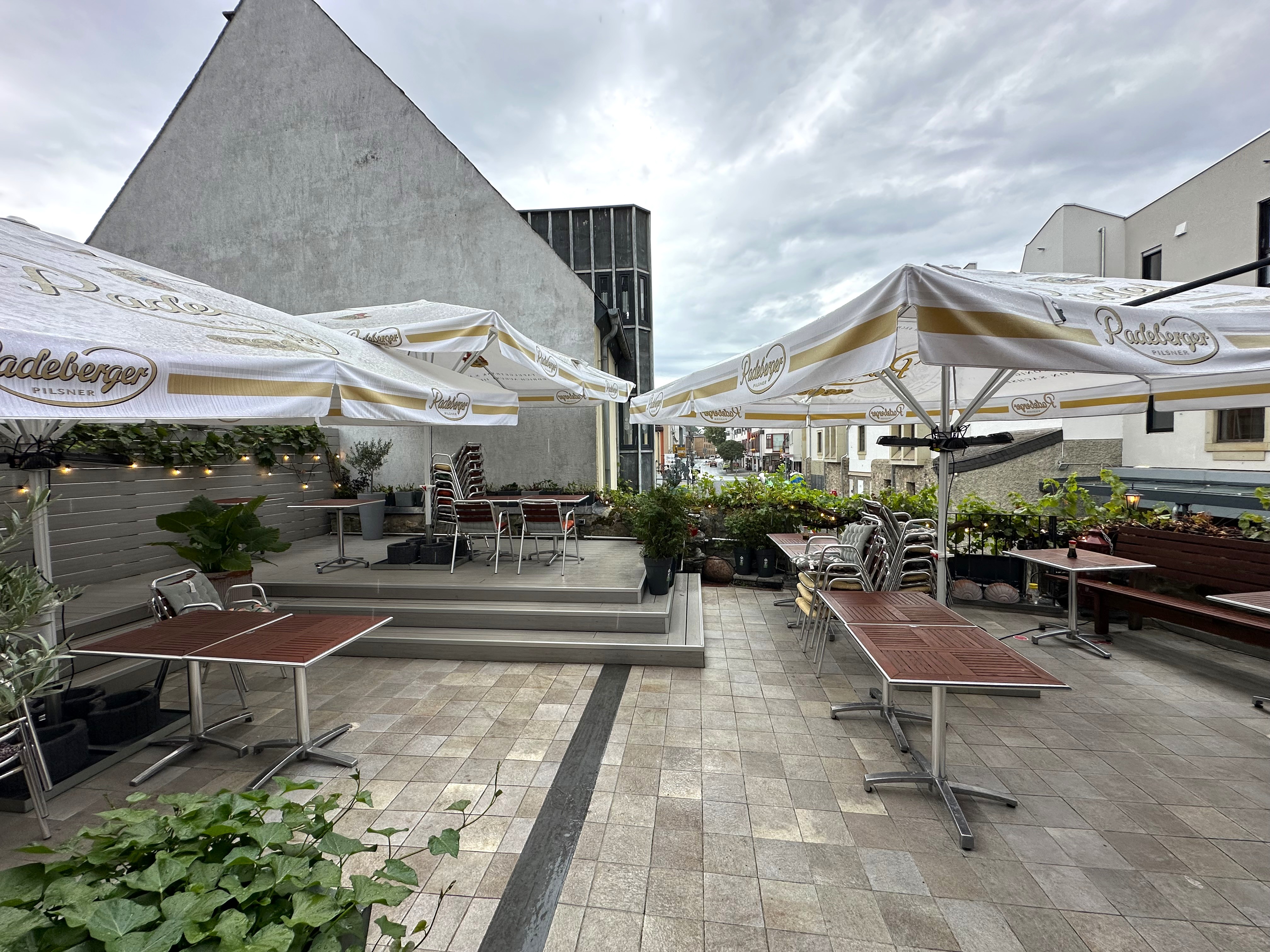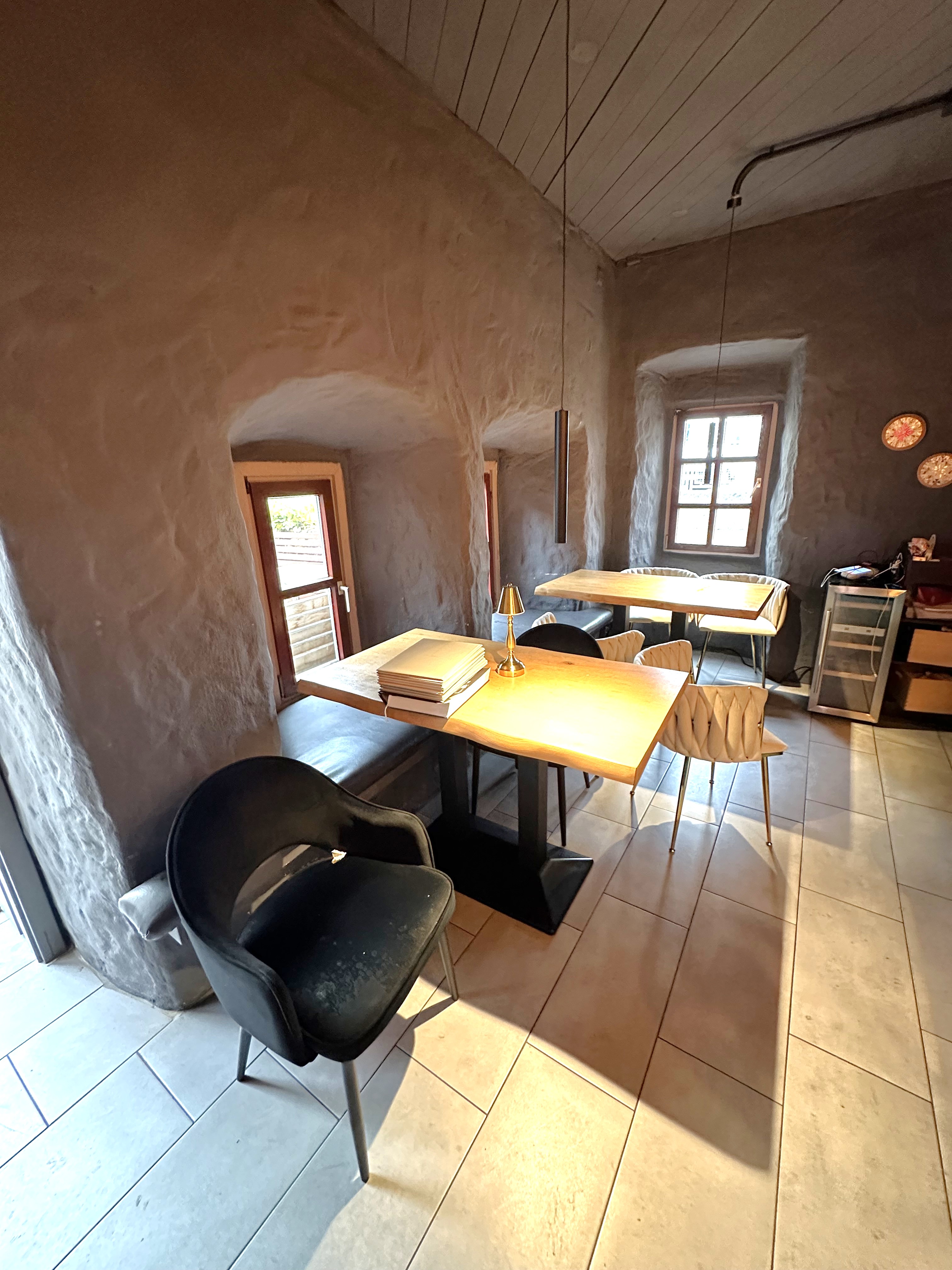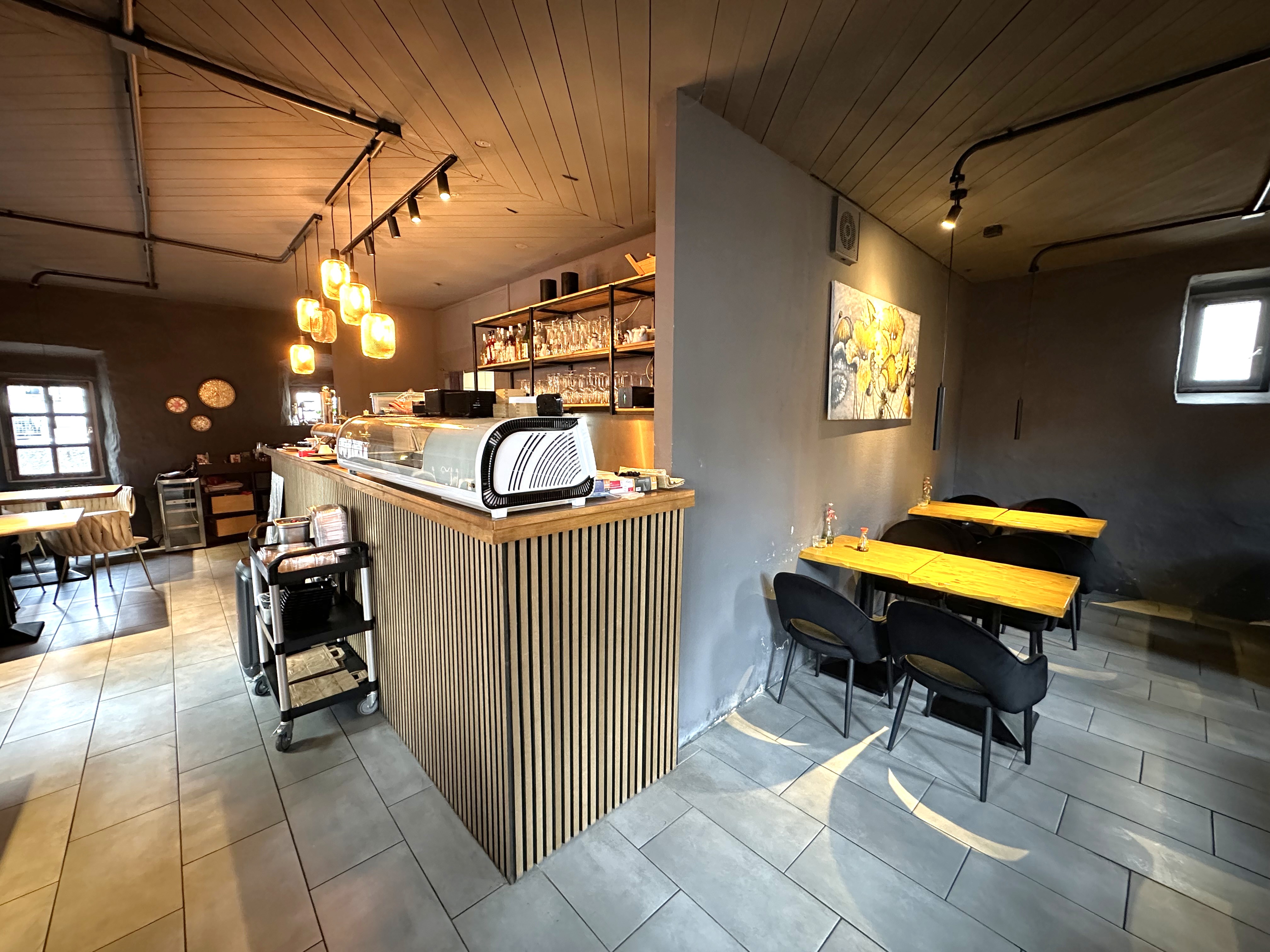 Im Erdgeschoss befindet sich der Gastraum mit Theke, Küche und der großen Terrasse.