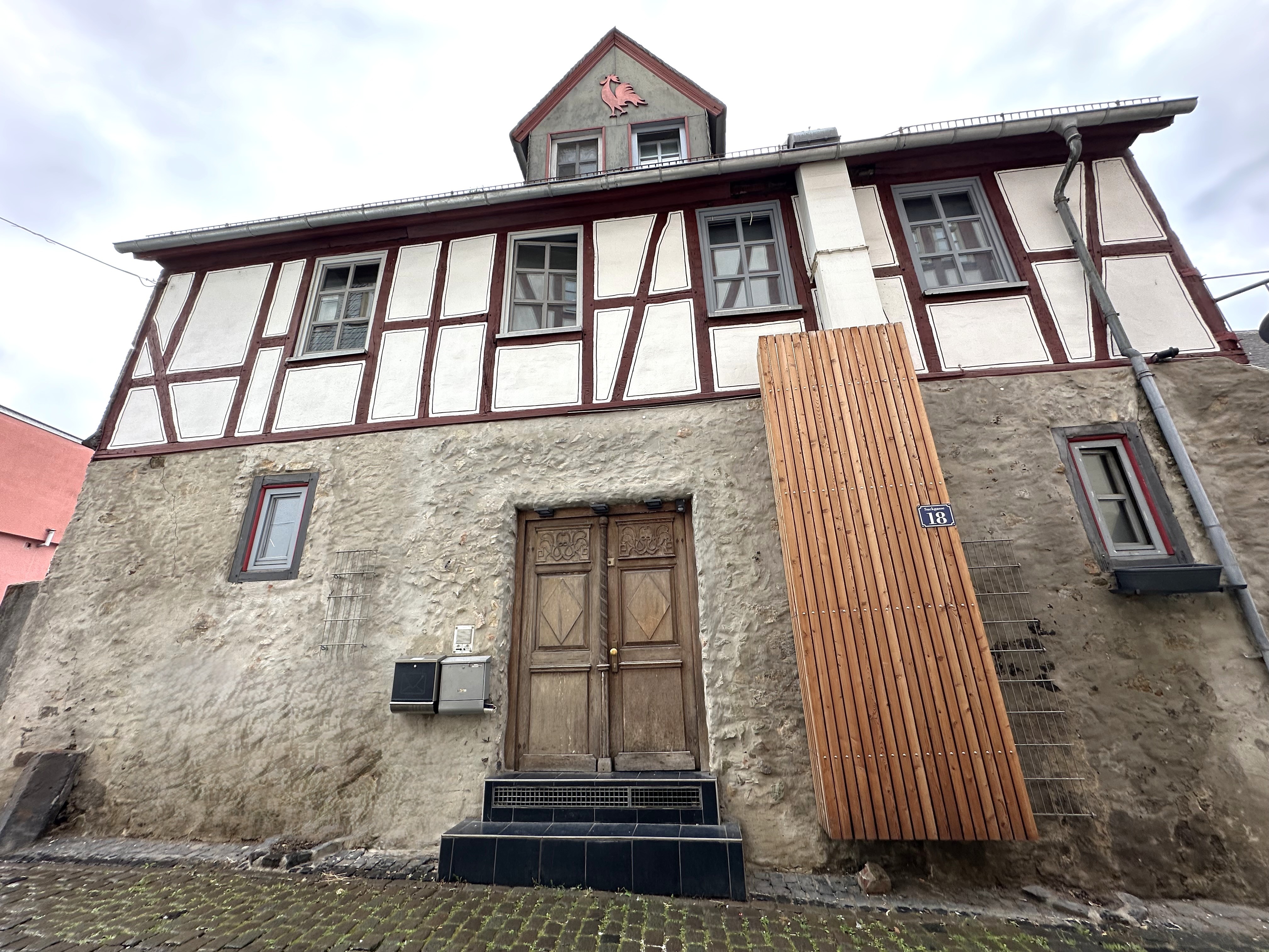Dieses denkmalgeschützte Gebäude wurde im späten 18. Jahrhundert erbaut. Der untere Bereich besteht aus Bruchsteinmauerwerk und der obere Teil aus Fachwerk.