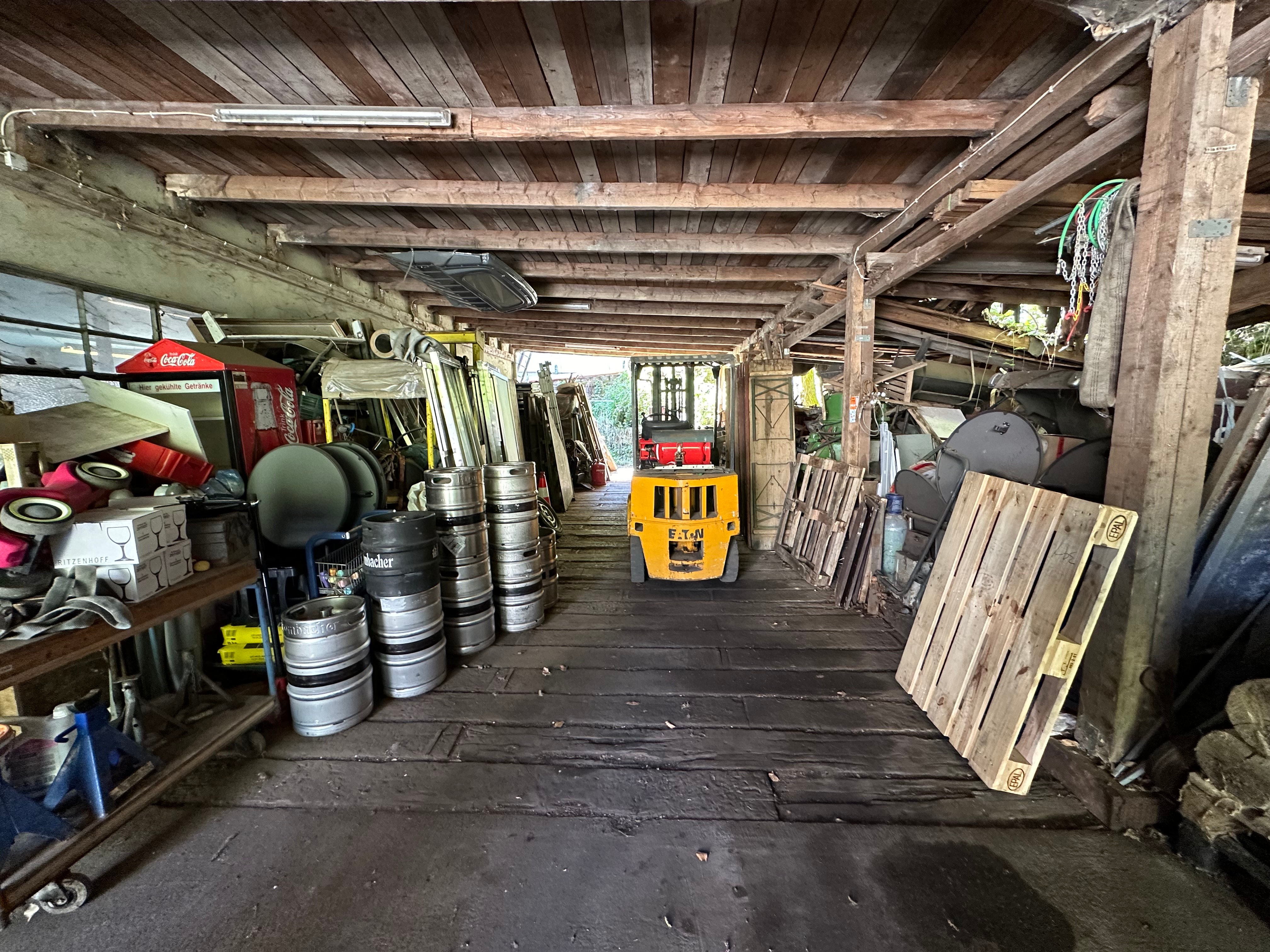 Die Halle ist massiv gemauert und die Nutzfläche beträgt ca. 148 m² und im vorderen Bereich befinden sich noch zwei Büroräume.